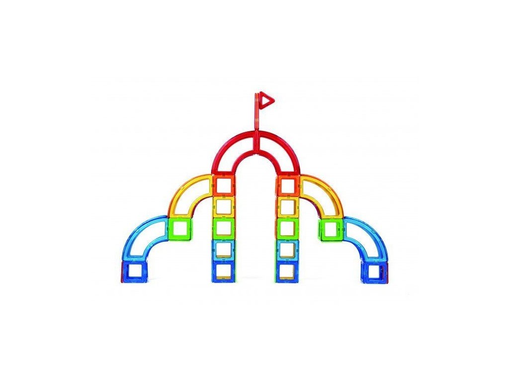 Magformers Creative je skutečnou lahůdkou pro nezkrotnou obrazotvornost dětí i dospělých. Množství a barevná i tvarová rozmanitost dílků poskytuje prostor pro sestavení těch nejodvážnějších konstrukcí. Díky vyššímu podílu obou druhů trojúhelníků je tato sestava vhodná i pro modelování jemnějších detailů. Pro inspiraci vám poslouží skvěle zpracovaný přiložený booklet. Sada obsahuje 20 čtverců, 12 trojúhelníků, 2 pětiúhelníky, 4 kosočtverce, 8 dlouhých trojúhelníků, 4 dvojité obdélníky, 8 výsečí, 4 lichoběžníky, 8 dlouhých oblouků, 4 oblouky, 4 trojité obdélníky a další. Vhodné pro děti od 3 let. Počet dílků: 90 Kreativní magnetická stavebnice Magformers umožňuje sestavovat velké množství trojrozměrných objektů, pomocí dvourozměrných plastových mnohoúhelníků. Magformers procvičuje jemnou motoriku, podněcuje tvořivost, učí děti barvy a základní geometrické tvary. Rozměry dílků a vhodně volené tvary zajišťují maximální možnou bezpečnost hračky . Materiál, z kterého je stavebnice vyrobena splňuje nepřísnější hygienická a zdravotní kritéria. Dílky jsou dostatečně velké, nelze je spolknout a jsou prakticky nerozbitné MAGFORMERS lze velmi dobře kombinovat i se známou magnetickou stavebnicí Geomag.