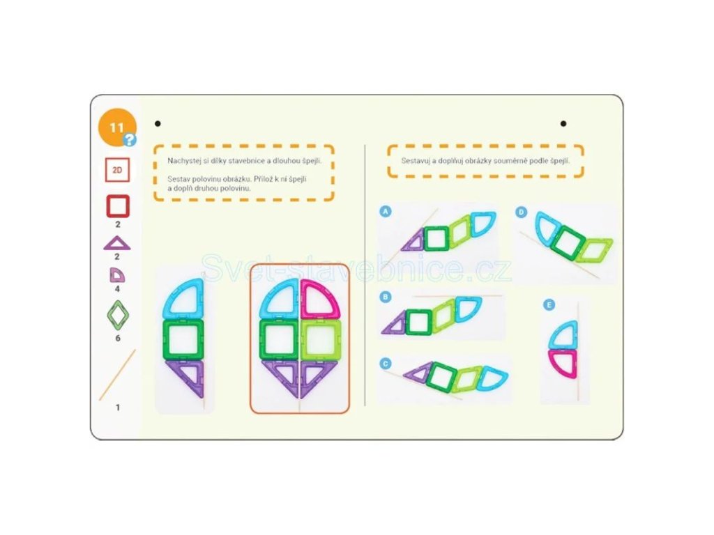 Box 2 zahrnuje 43 dílků Magformers v plastovém boxu a 36 výukových karet: