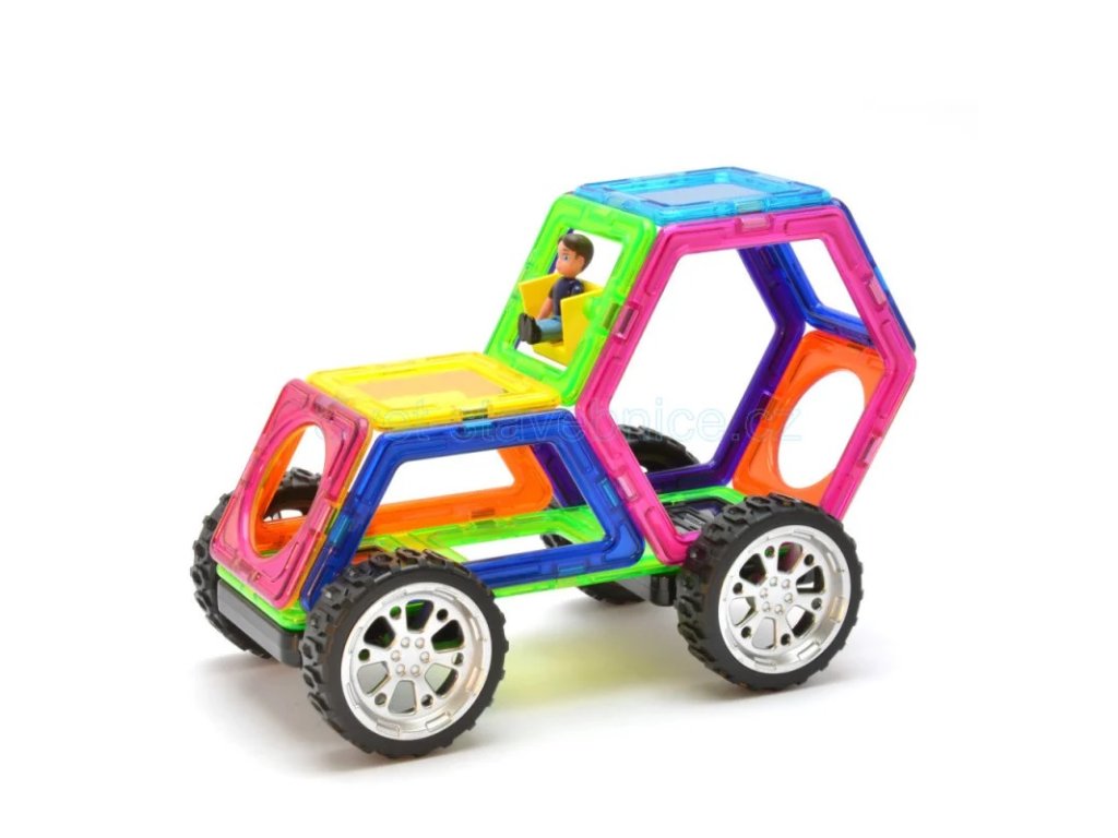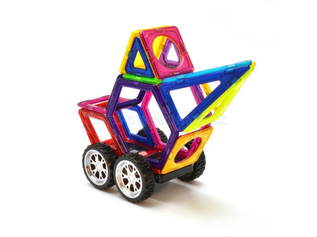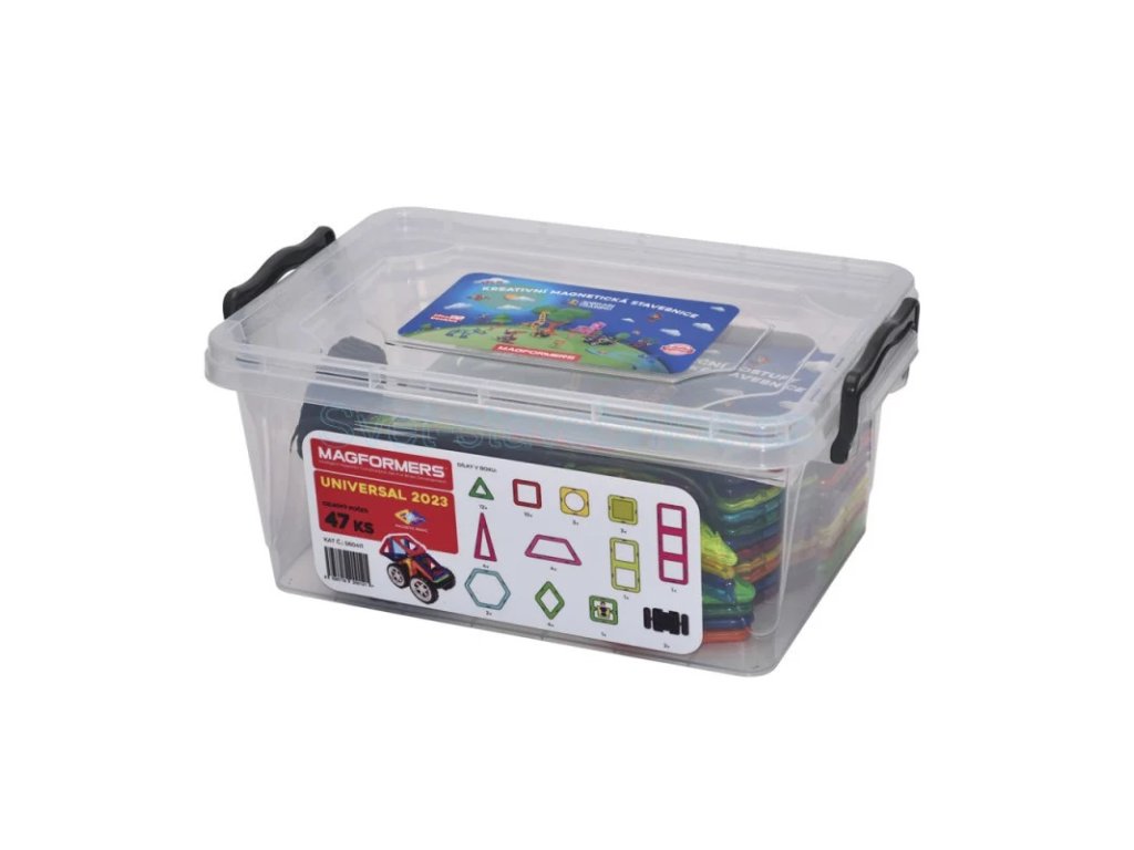 tavebnice Magformers Universal Box patří k nejoblíbenějším balením, obsahuje dostatek základních tvarů, figurku chlapečka nebo holčičky a k tomu navíc sadu koleček. Z Magformers Universal boxu postavíte domečky, hrady, auta a stroje, vše v nádherných zářivých barvách duhy. Stavebnice je uložena v plastovém boxu - když si děti vyhrají, můžou vše nasypat dovnitř, zaklapnout víkem a je uklizeno. Box je dostatečně prostorný, takže se do něj všechny dílky bez problému vejdou.