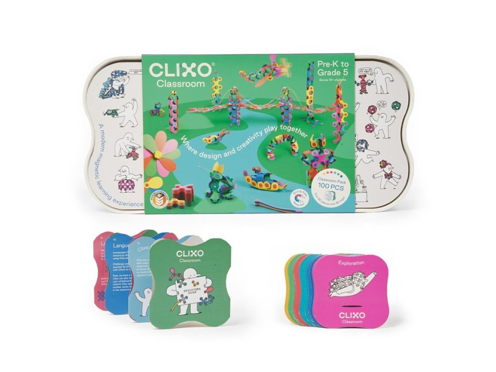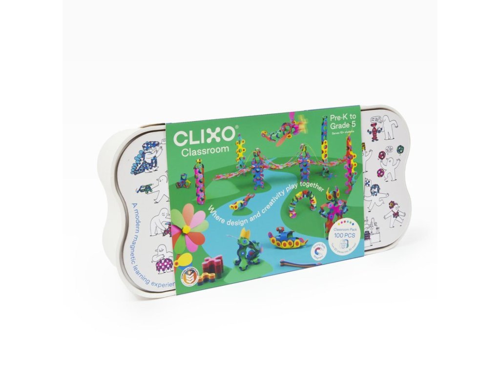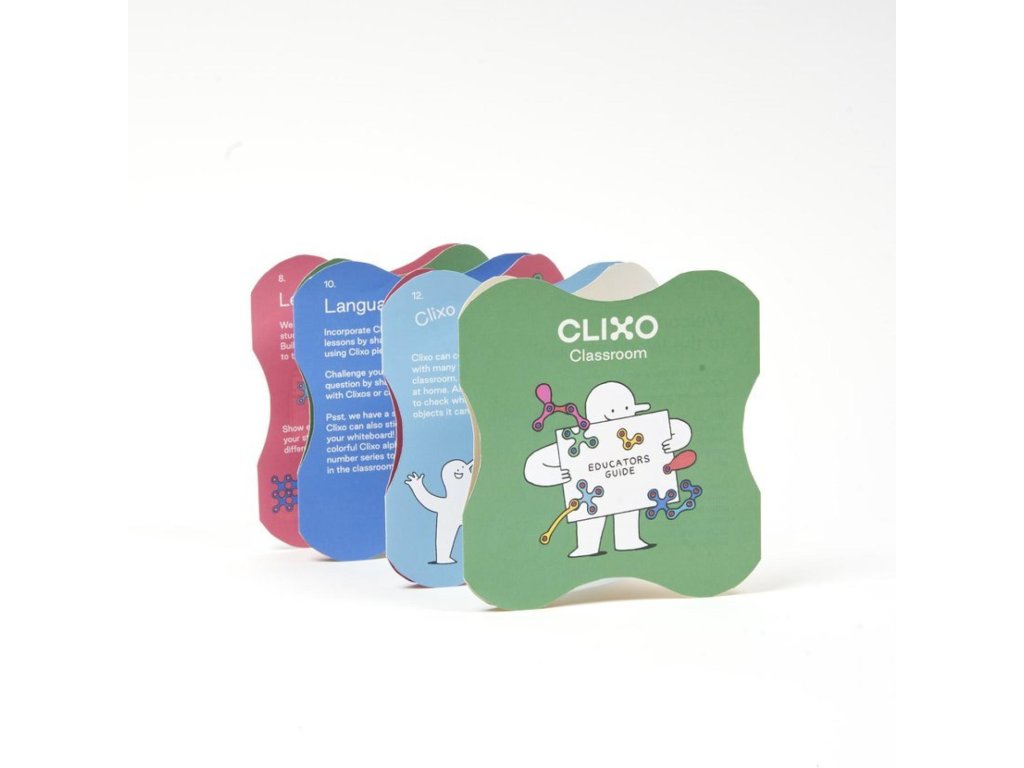 Clixo obsahující také průvodce pro pedagogy a 30 karet s nápady na aktivity. Umožňuje vytvářet architektonické stavby, vědecké modely – např. molekuly, atomy nebo planetární soustavy. Umělecky zaměřeným dětem umožní vytvářet abstraktní obrazy, sochy a kreativní děti si mohou vytvářet své vlastní hračky nebo herní plochy pro stolní hry. Inspirace pro různé stavby naleznete na papírovém balení, jež tvoří obal výrobku. V tomto zázračném balení se skrývá svět zábavných objevů!