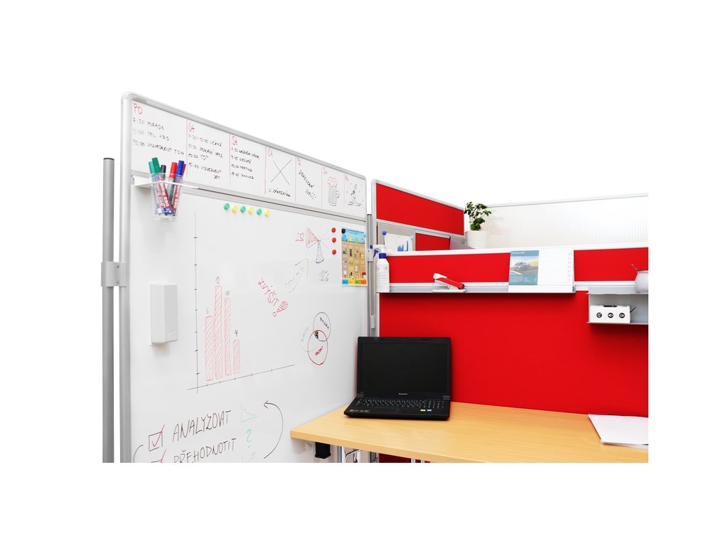 - Oboustranná magnetická tabule na fixy s vysoce odolným keramickým povrchem nejvyšší kvality vhodným pro intenzivní popis.
