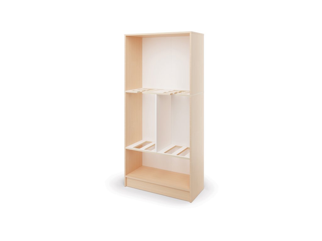 - Šatní skříň má 3 police vyrobené z dřevotřísky / MDF desky v bílé barvě o rozměrech 86,5 x 38,6 cm a tloušťce 18 mm.