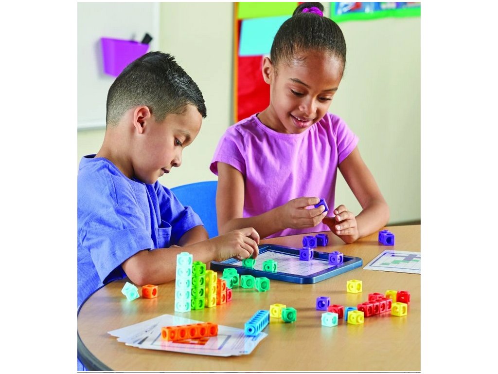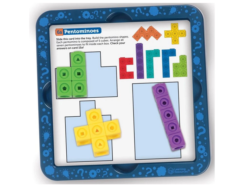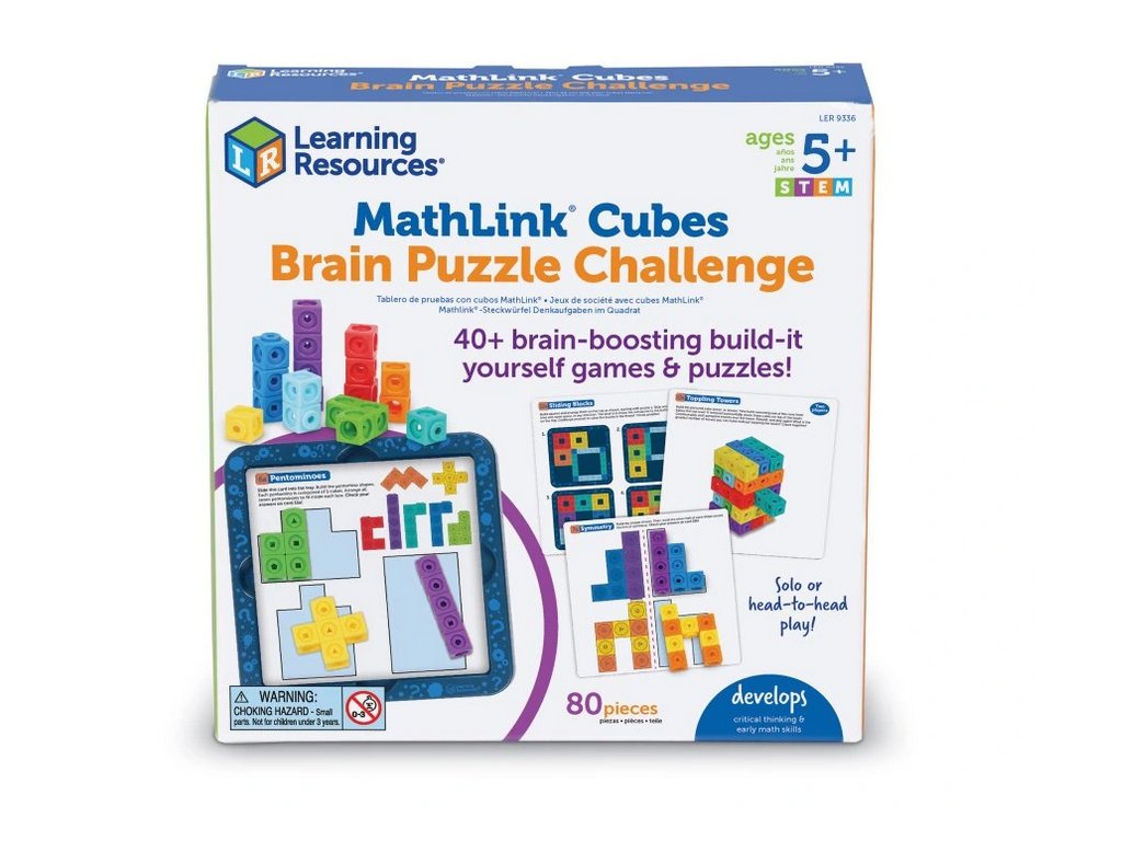 Learning Resources MathLink® Cubes Brain Puzzle Challenge nabízí více než 40 originálních hlavolamů a stavebních aktivit, které děti pobízejí k řešení problémů – ať už hrají samostatně, nebo ve dvojici.