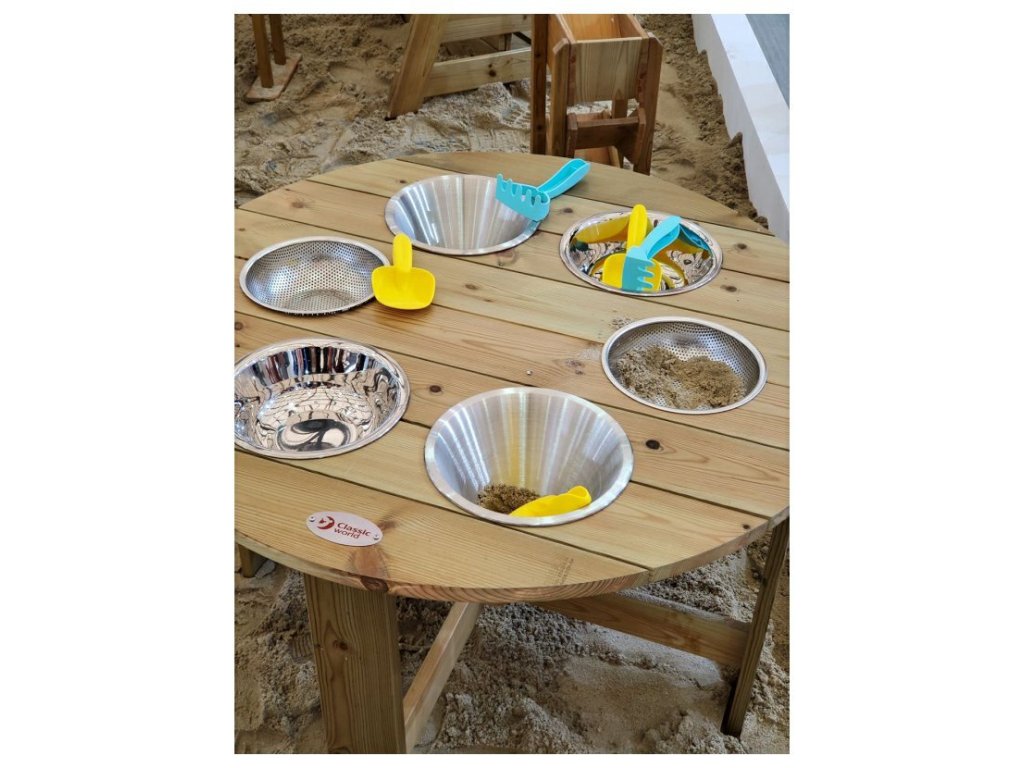 Stůl pro hry s pískem pro děti od renomované značky Classic World je perfektním doplňkem na dětské hřiště! Výrobek je vyroben z kvalitního dřeva, natřený netoxickou impregnací, zcela bezpečný pro děti. Výrobek rozvíjí dětskou představivost, postřeh a logické myšlení.