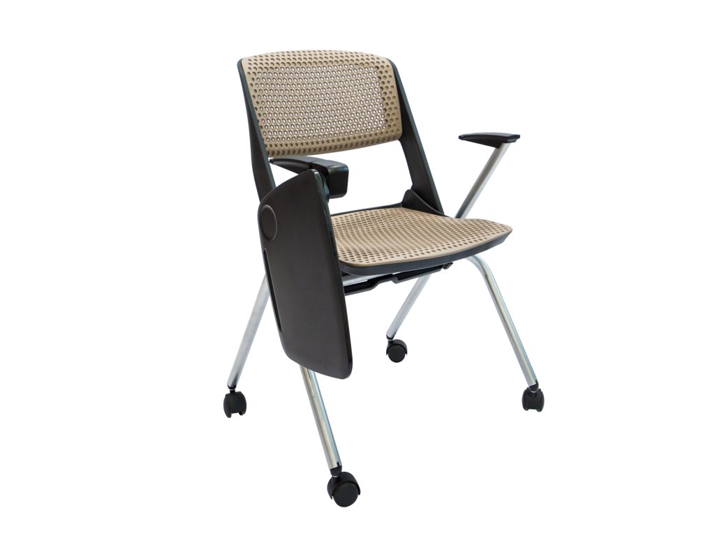 Perforovaný sedák a opěradlo, područky, plastová deska na psaní, 4 kolečka, řaditelné/spojitelné k sobě, moderní design.