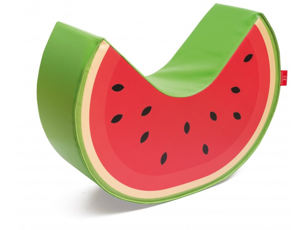 - houpací prvek přitahuje pozornost svými intenzivními barvami a tvary. Po otočení na bok se z houpačky stane sedátko nebo malý stolek