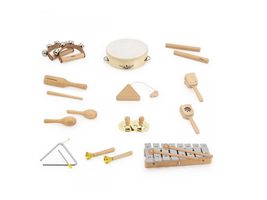 Obsahuje 12 různých nástrojů: xylofon, bubínek, triangl a další bicí nástroje.