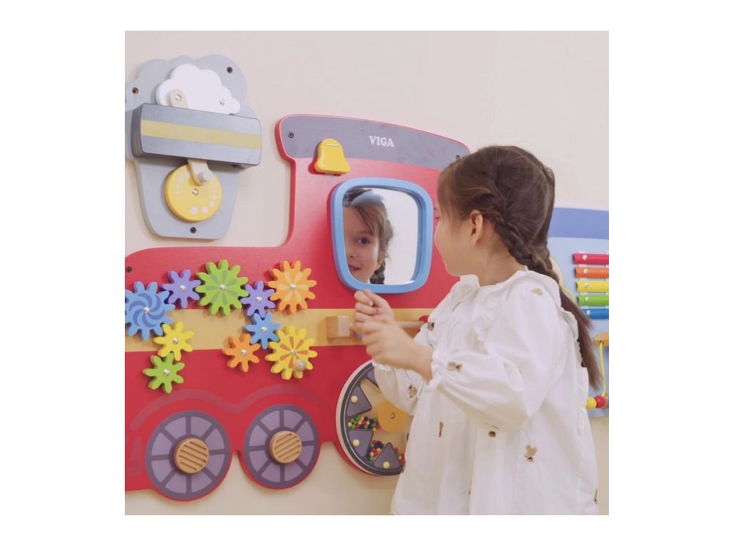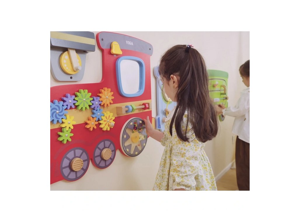 Barevný vláček je dřevěná multifunkční hračka na zeď, která dětem poskytne hodiny skvělé zábavy a učení.