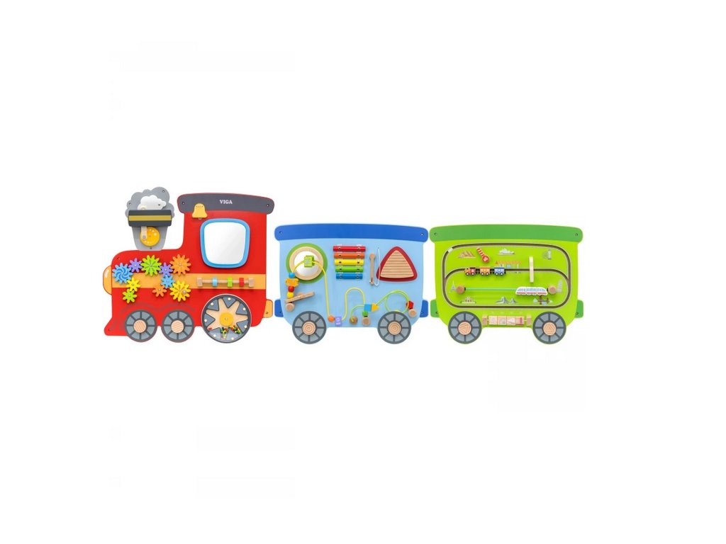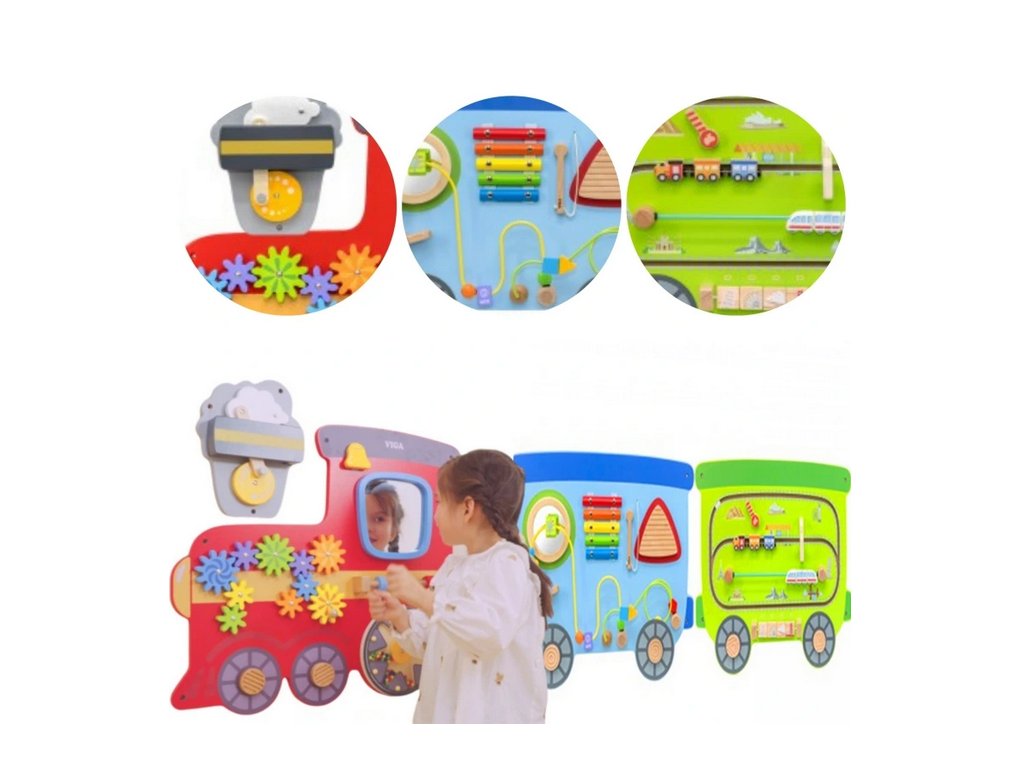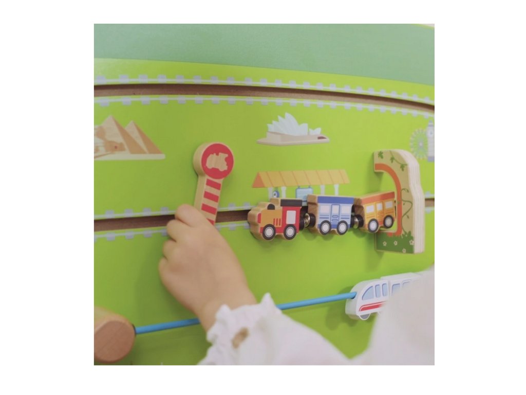 Tabule s aktivitami v podobě vláčku s prvky Montessori pomůže zvídavým dětem a zároveň jim poskytne několik samostatných hraček.