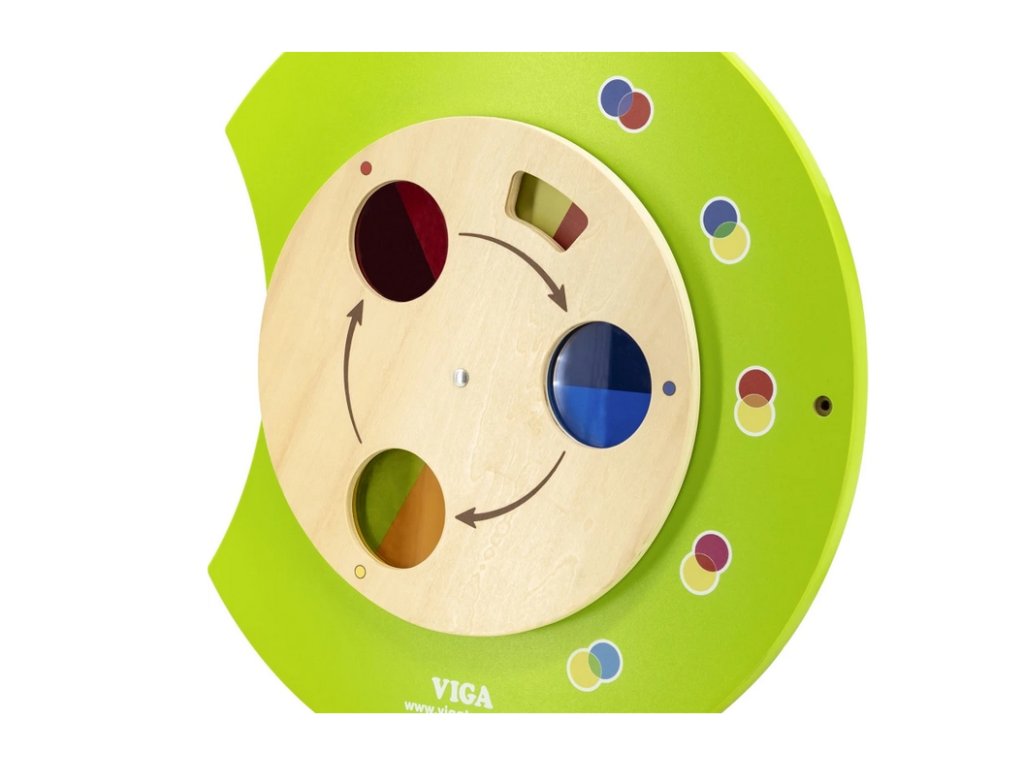 - Na třetí desce se dítě může seznámit s barvami, které vznikají smícháním 3 základních barev: červené, žluté a modré.