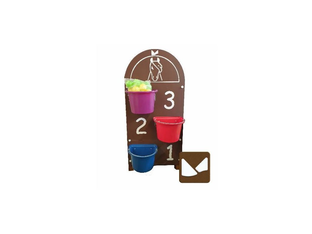 Didaktický panel Nakrm koníčka disponuje odjímatelnými plastovými boxy, do kterých se děti mohou trefovat míčky.