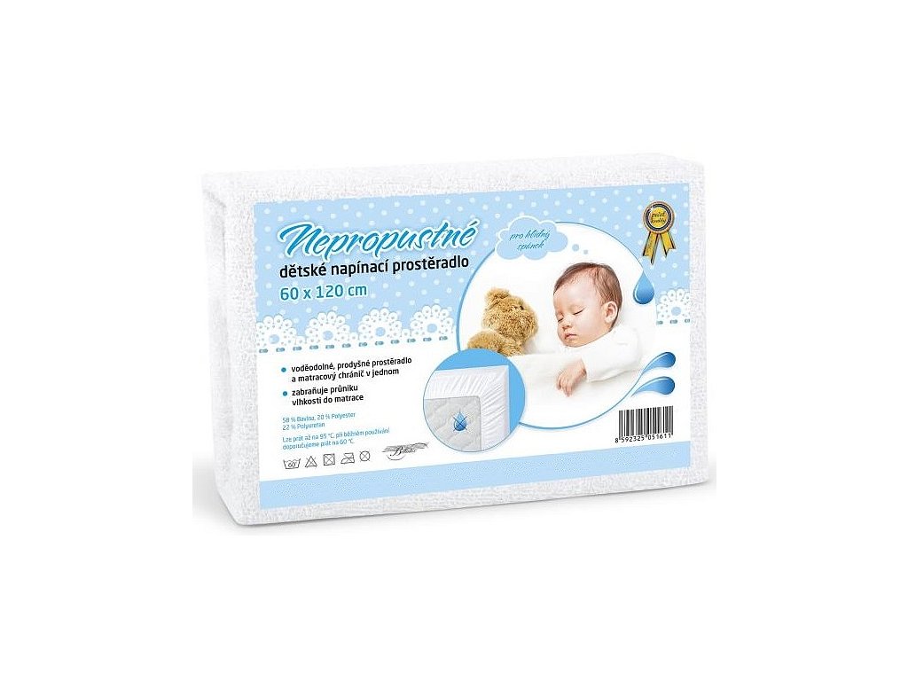 Dětské froté prostěradlo s polyuretanovým zátěrem na spodní stravě.