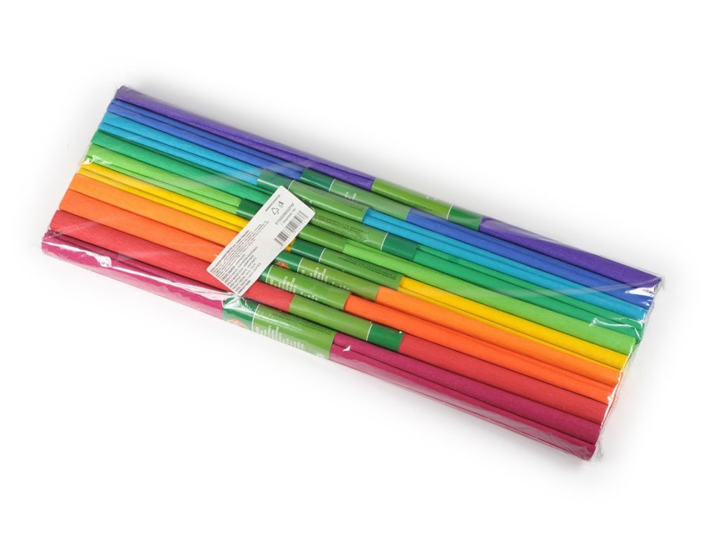 Souprava deseti kusů krepových papírů v mixu barev barevného spektra (viz. obrázek).