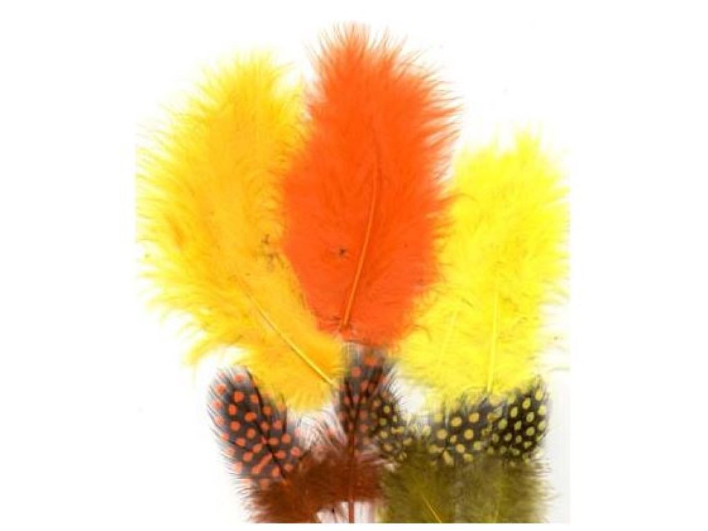 Peří kropenaté + žluté mix 18ks