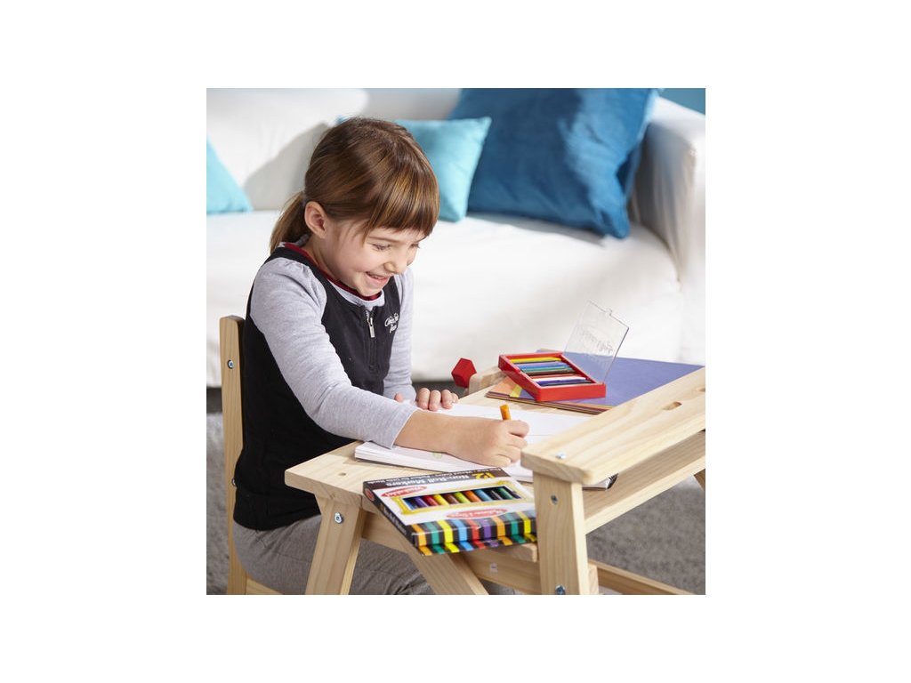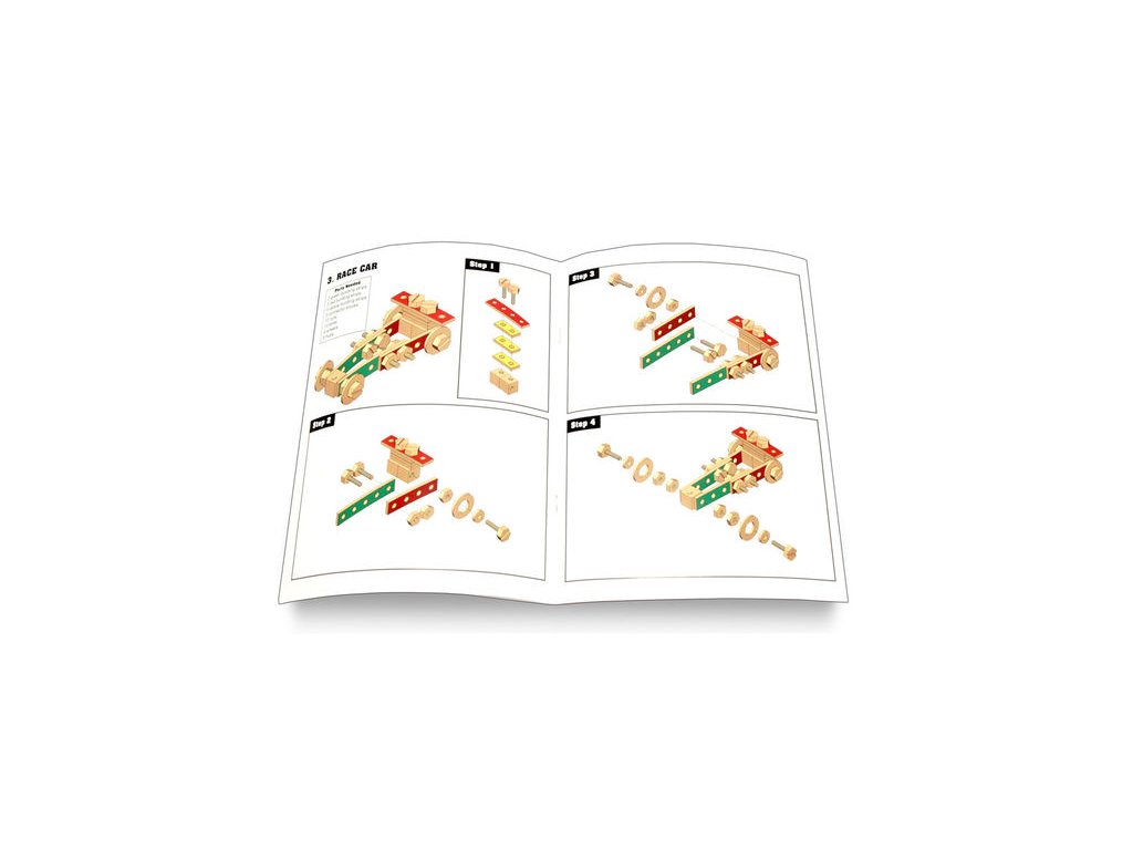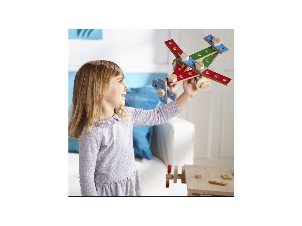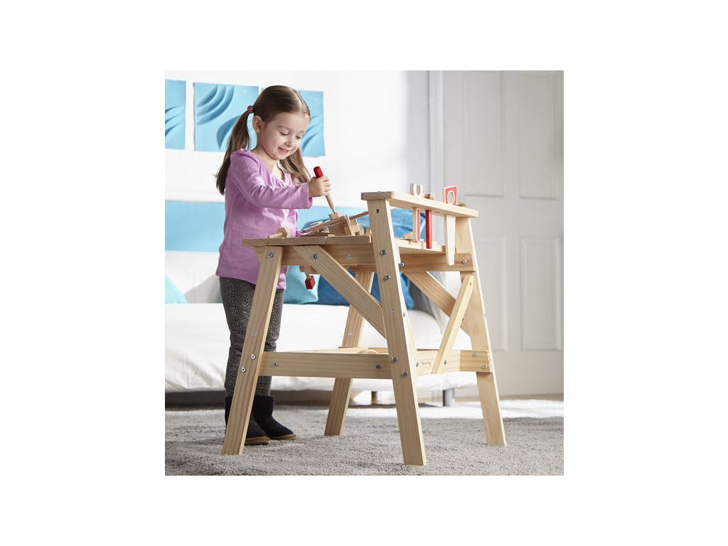 Pomocí pevného dřevěného pracovního stolu, který je přizpůsoben malým řemeslníkům, zaměstnáte děti šroubováním matic a šroubků, kontrukcí autíček a všeho co jim dovolí jejich dětský fantazie.