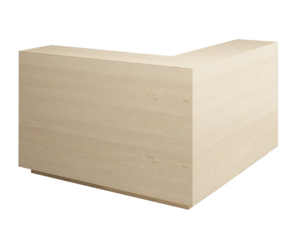 - Recepční pult o rozměrech 183,5 x 183,5 x 119 cm vyroben z dřevotřísky tloušťky 25 mm, dekor bříza
