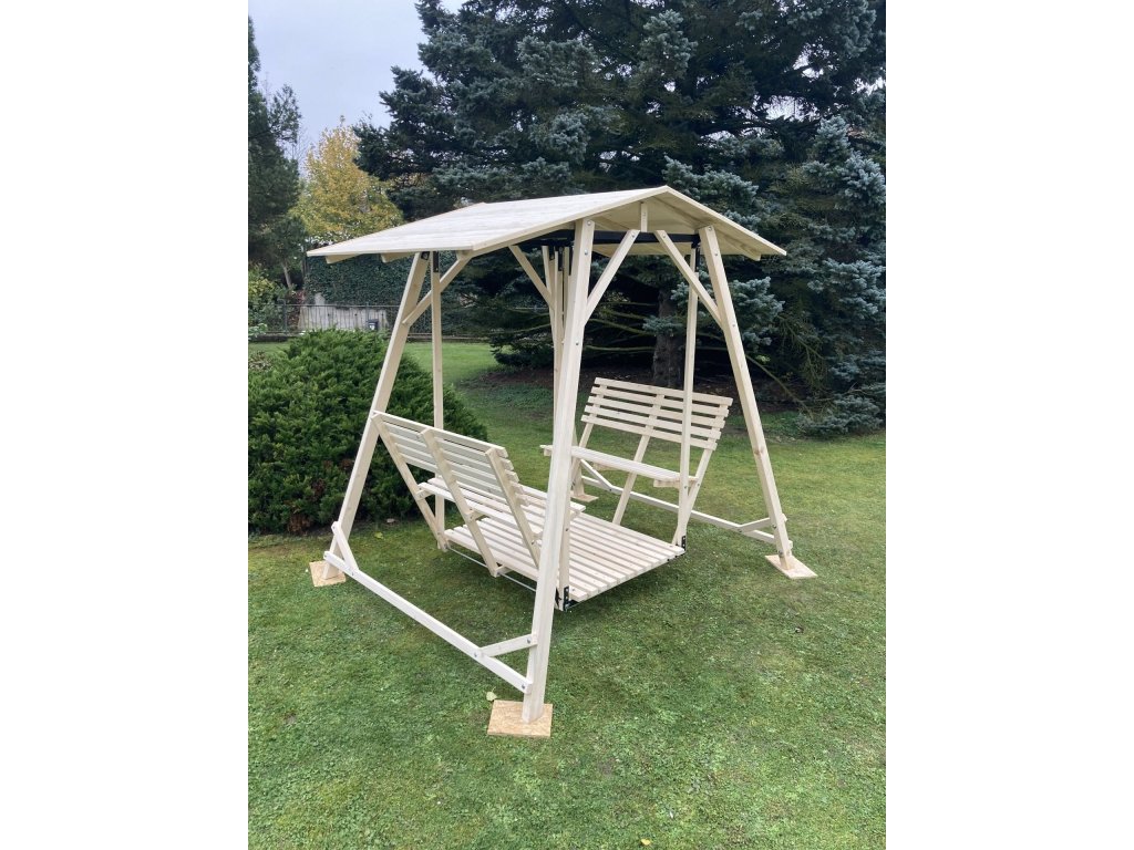 Retro zahradní houpačka bez lazury s dřevěnou střechou