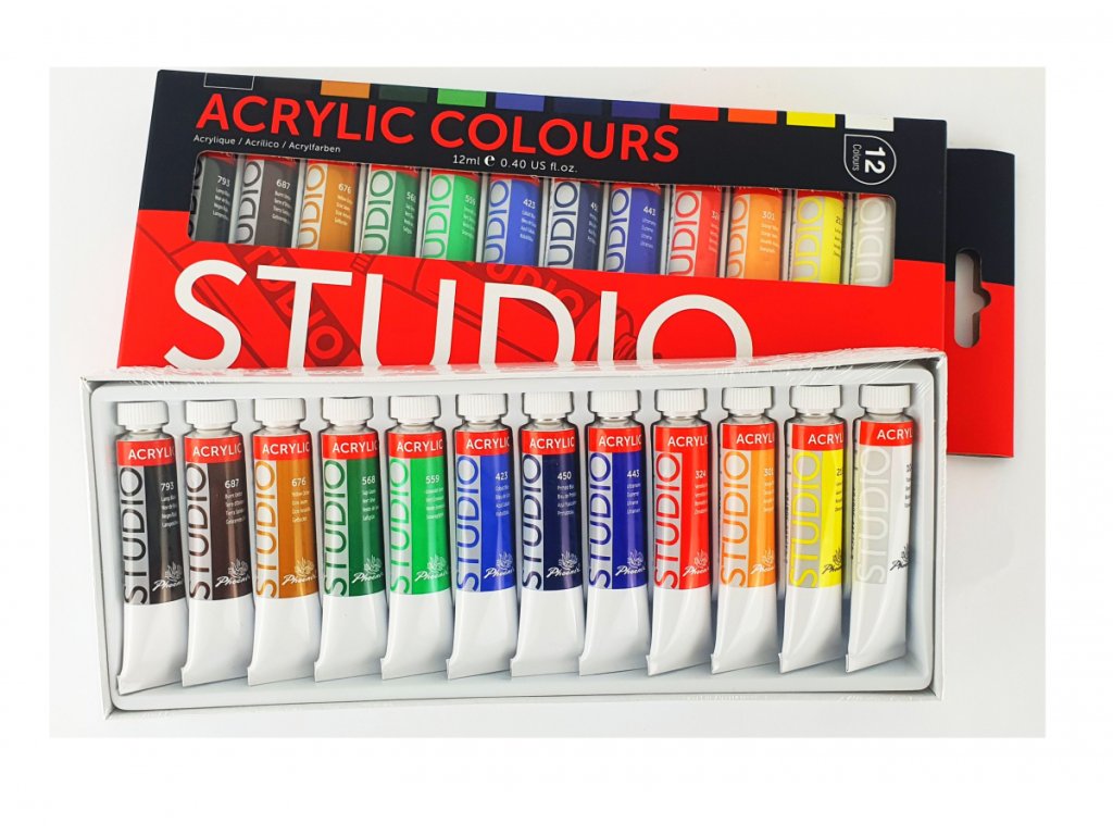 Sada obsahuje 12 základních barev v tubách po 12ml. Jednotlivé obsažené barvy v sadě můžete vidět v obrázku produktu.