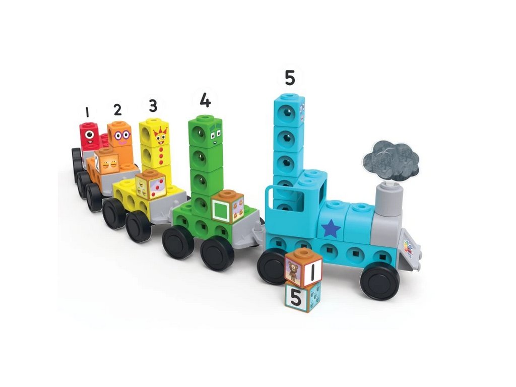 Sada aktivit MathLink® Numberblocks Express Train umožňuje dětem stavební hru s vlakem, rozvoj počítání a jednoduché aritmetiky pomocí spojovacích kostek a tematických doplňků.