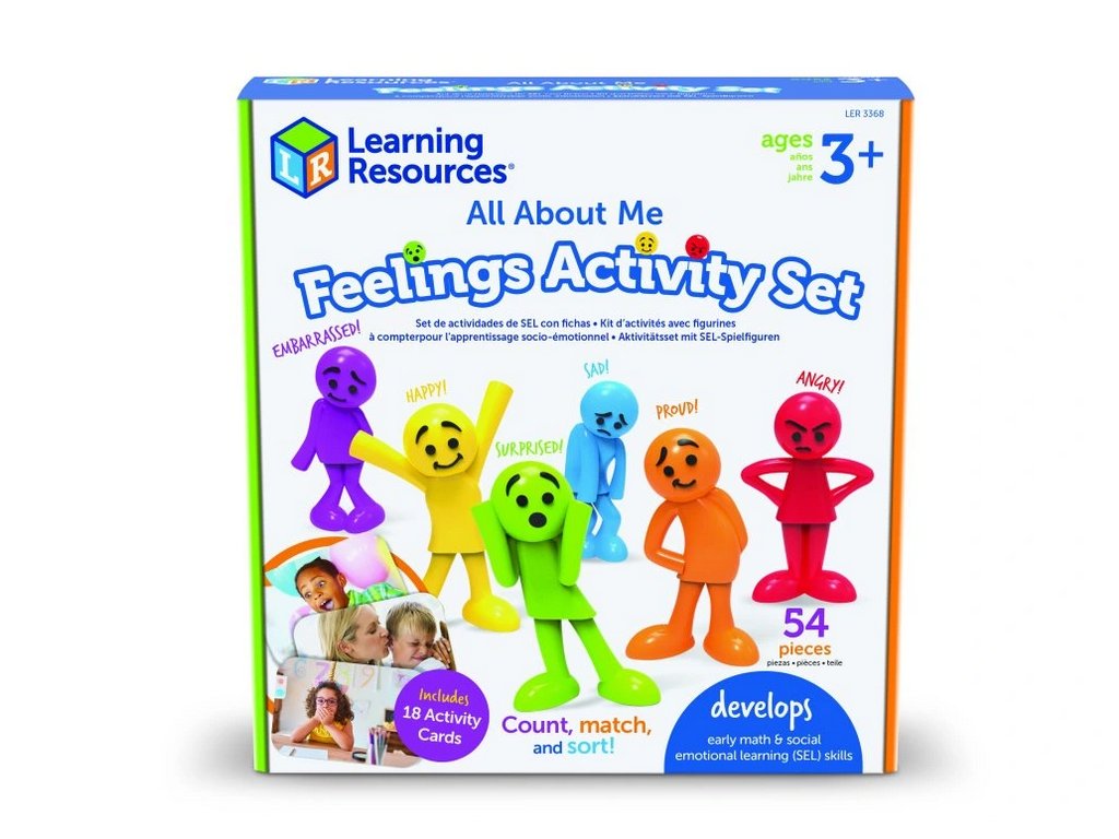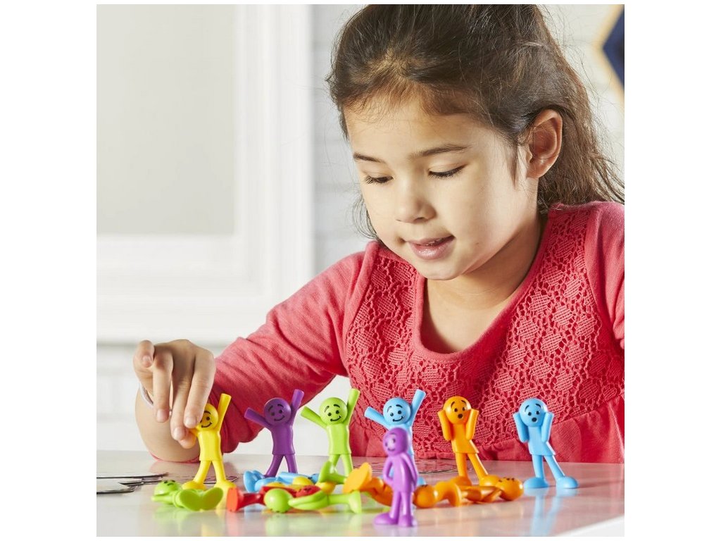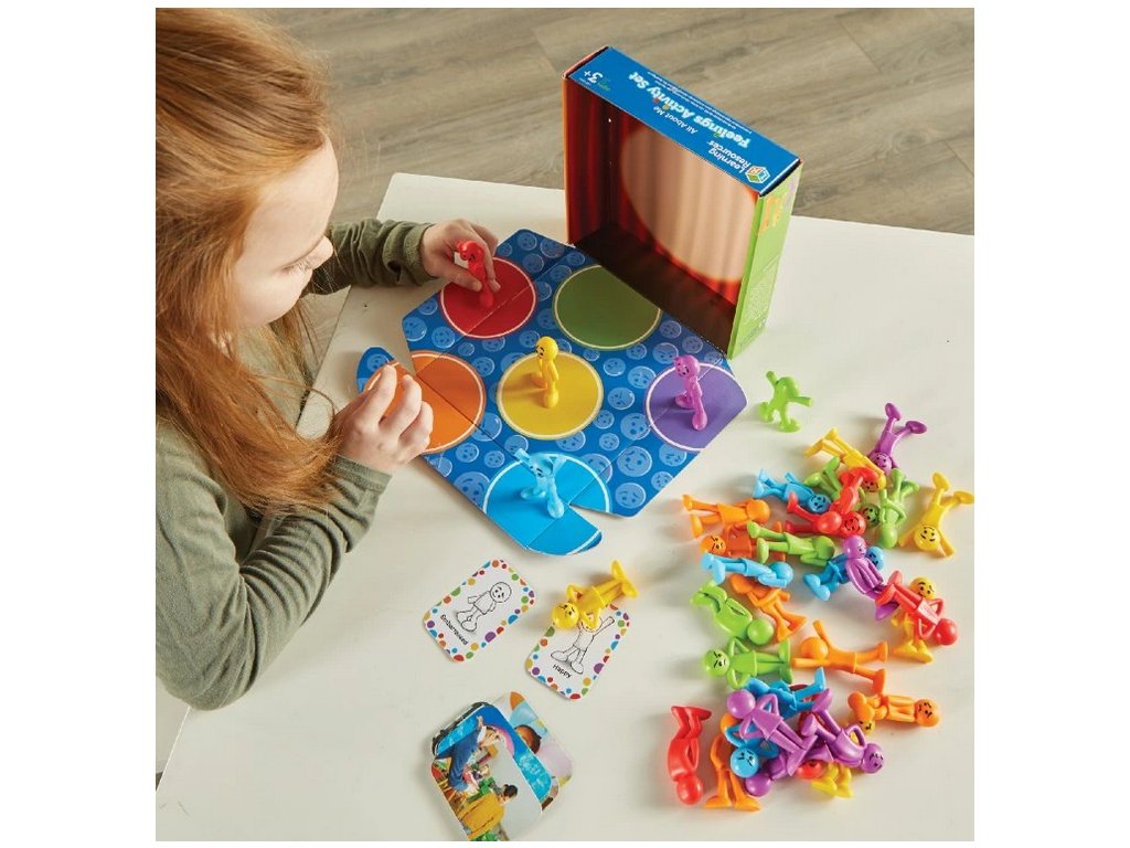 Sada Vše o mně – pocity od Learning Resources® přináší ideální nástroj pro rozvoj sociálně-emočních dovedností u nejmenších. Barevné plastové žetony znázorňují šest základních emocí pomocí přátelských obličejů, které děti snadno pochopí a pojmenují. Díky různým barvám je možné s žetony také třídit, přiřazovat nebo počítat, čímž se učí více dovedností najednou.