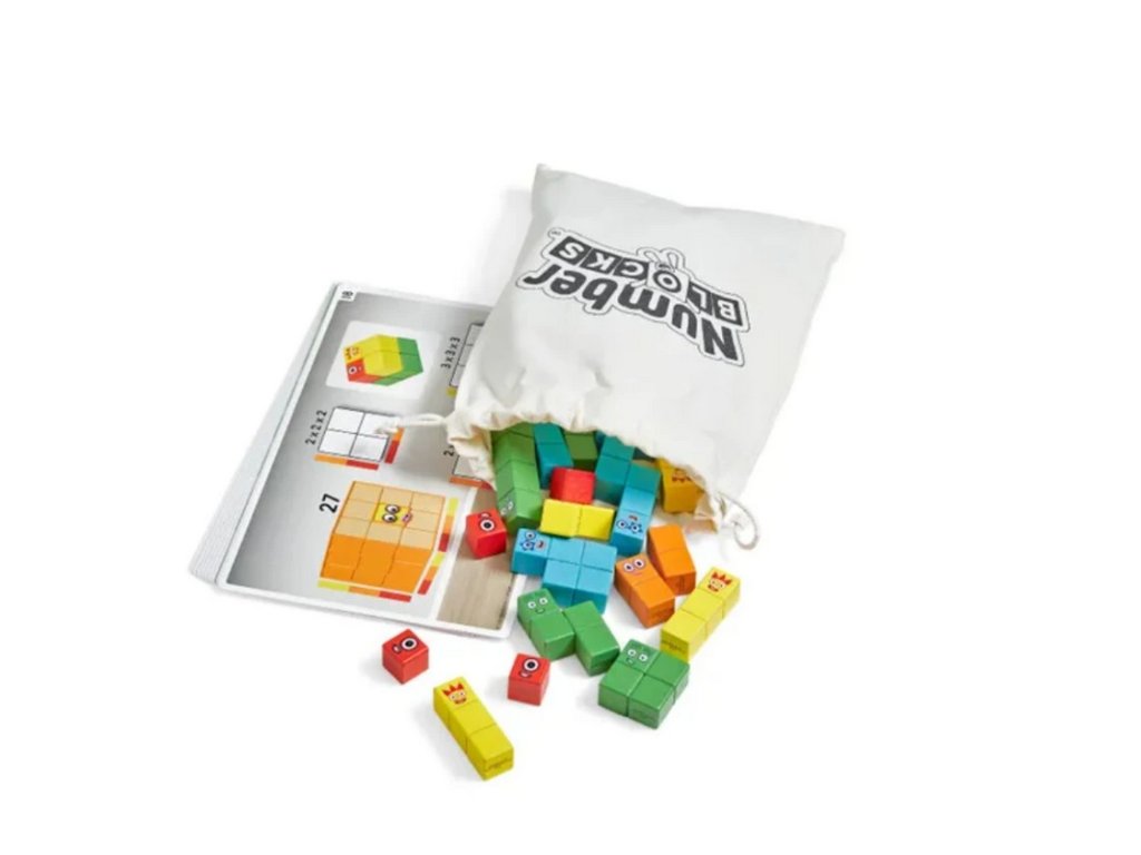 - Obsah balení: 28 dřevěných bloků s motivy Numberblocks, 10 oboustranně potištěných aktivitních karet, Activity Guide a úložná taška.