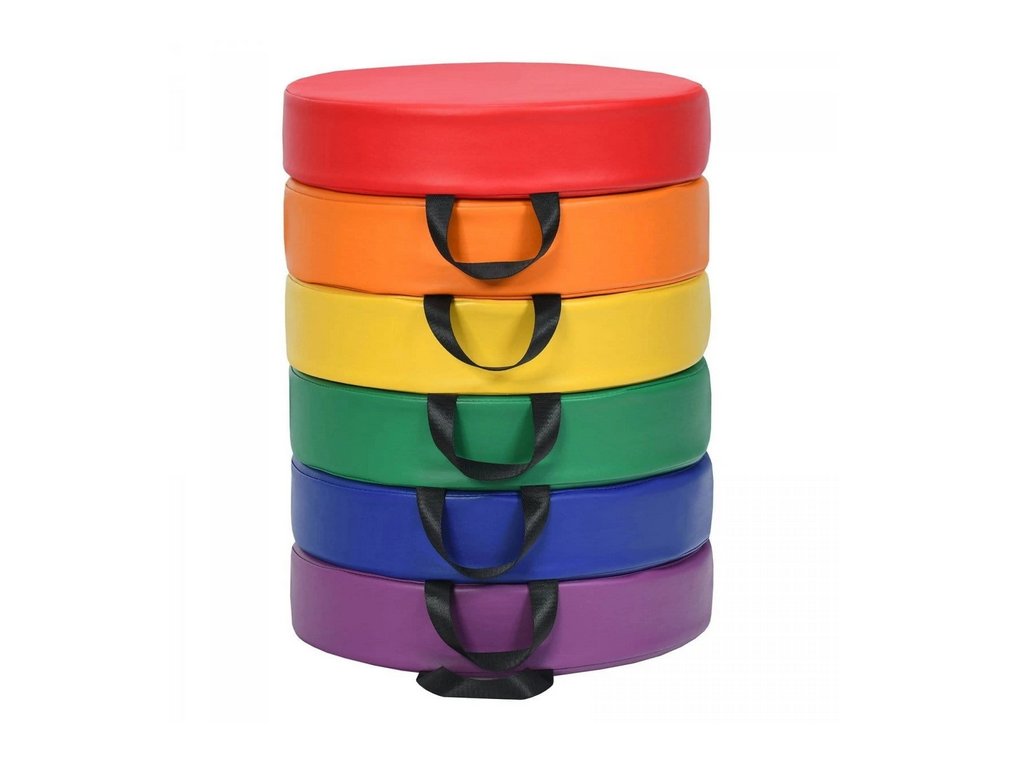 Podložky o průměru 38 cm v barevném provedení. Jelikož jsou podložky skládací a snadno přenosné, můžete ji kdykoliv přibalit s sebou na cestu.