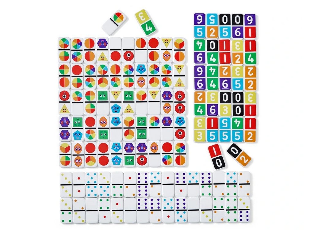 - 112 domin rozdělených do čtyř forem (čísla, puntíky, kruhové segmenty, postavičky Numberblocks čísla 1–6)