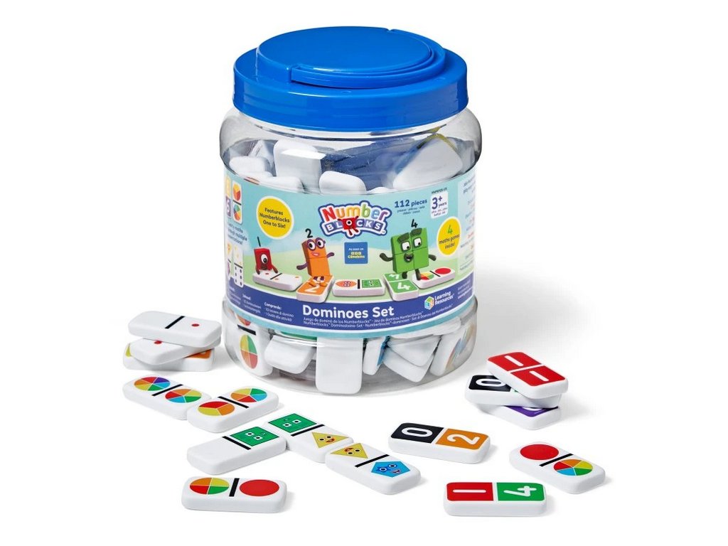 Learning Resources Sada domin Numberblocks® obsahuje 112 domin rozdílného typu, díky čemuž děti propojují číselné koncepty zábavnou formou. Balíček obsahuje: