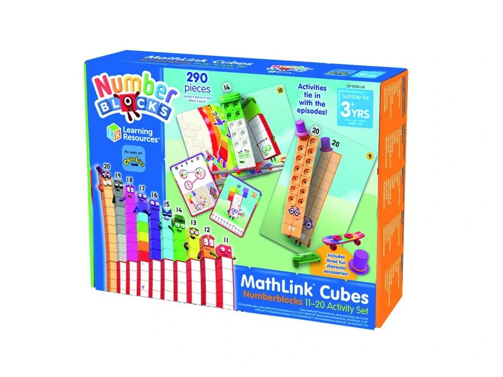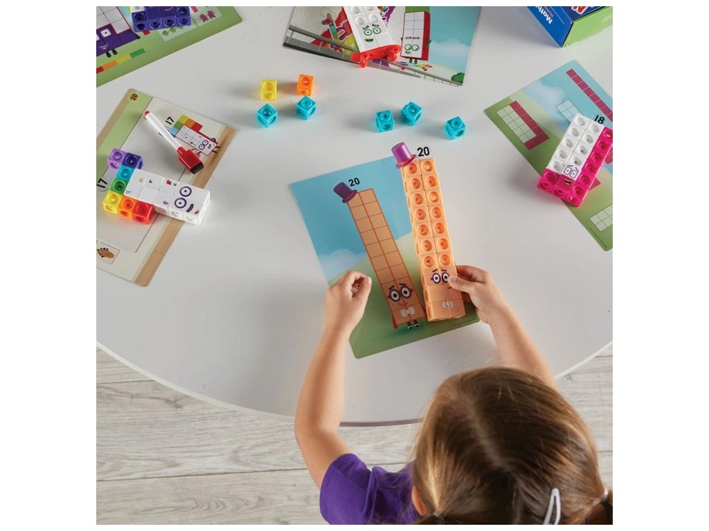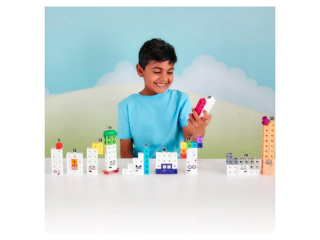 Navazující edice MathLink® Cubes Numberblocks 11–20 přenáší děti do světa vyšších čísel s oblíbenými postavami jako Čtrnáctka se skateboardem nebo Dvacítka s cylindrem. Díky barevným kartám s postavami si děti vytvoří vizuální a emocionální vztah k číslům a snadněji pochopí jejich význam.
