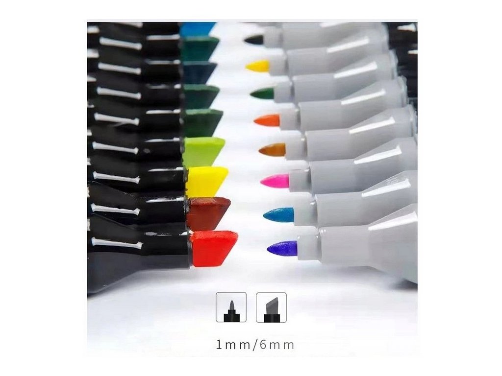 Objevte naši sadu obustranných lihových fixů s dvojitými hroty pro precizní i plošné kreslení. Ideální pro umělce, designéry i kreativní nadšence. Sada 100 kusů. Dlouhotrvající barvy, snadné vrstvení a míchání odstínů. Dokonalé pro ilustrace, náčrty i umělecké projekty. Pořiďte si kvalitní fixy pro neomezené tvůrčí možnosti.