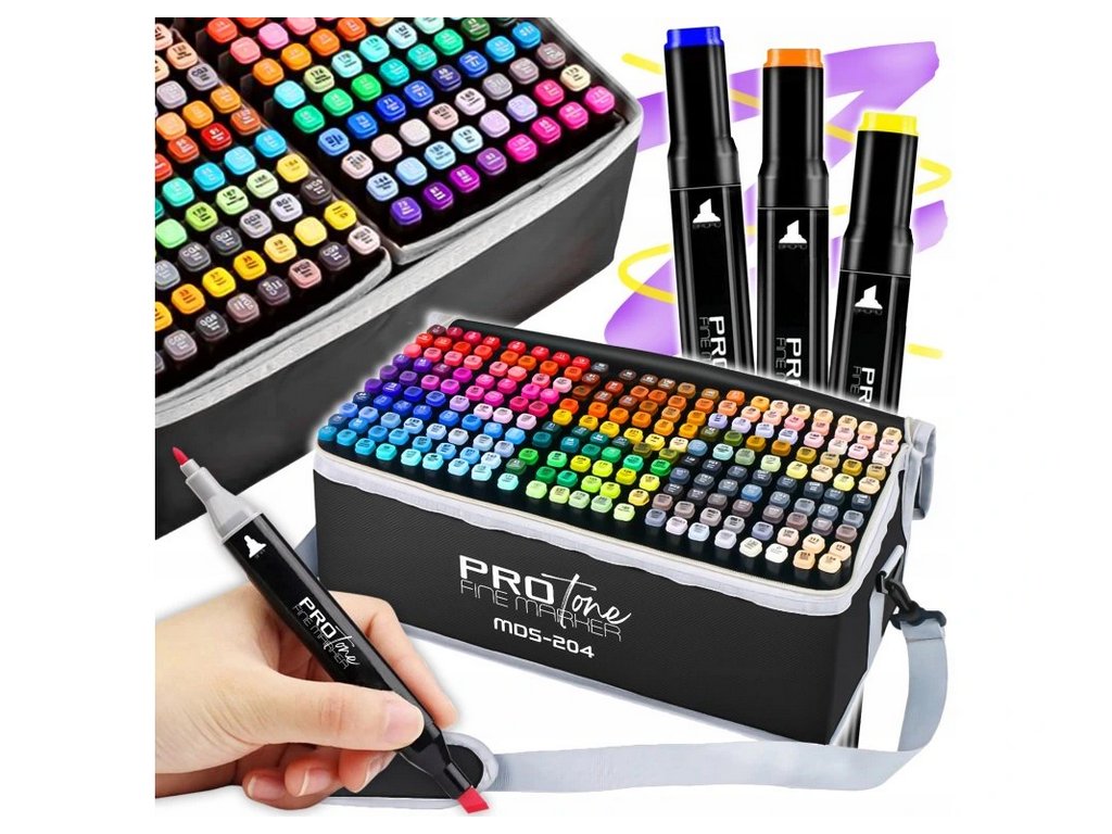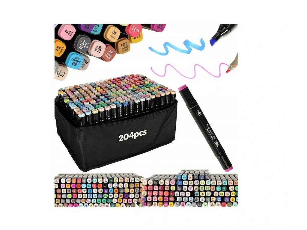 Objevte dokonalý nástroj pro vaši kreativitu! Naše luxusní sada obsahuje 204 kvalitních lihových fixů s vysoce pigmentovaným inkoustem, který zajišťuje syté, jasné barvy a dlouhodobou stálost proti vyblednutí.