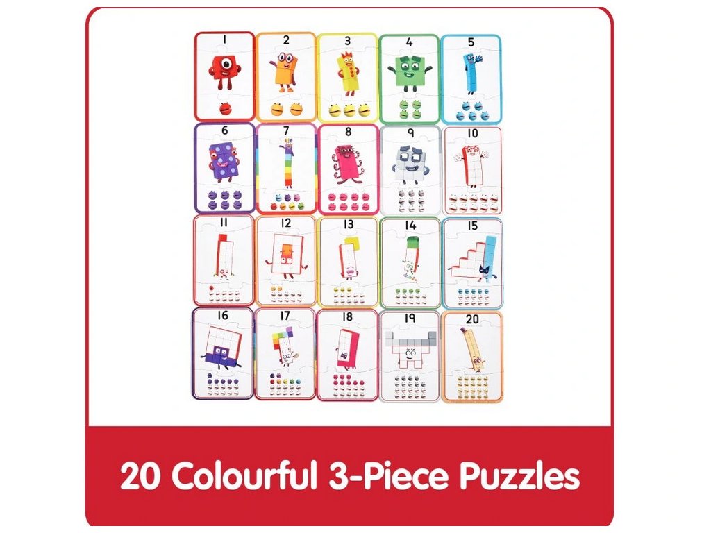 - Obsah balení: Puzzle dílky s čísly 1–20 a postavičkami Numberblocks®