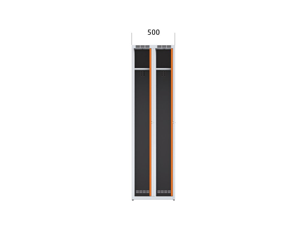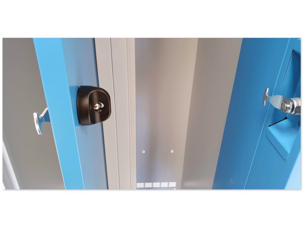 kovová šatní skříňka, detail větracích otvorů v horní části korpusu
