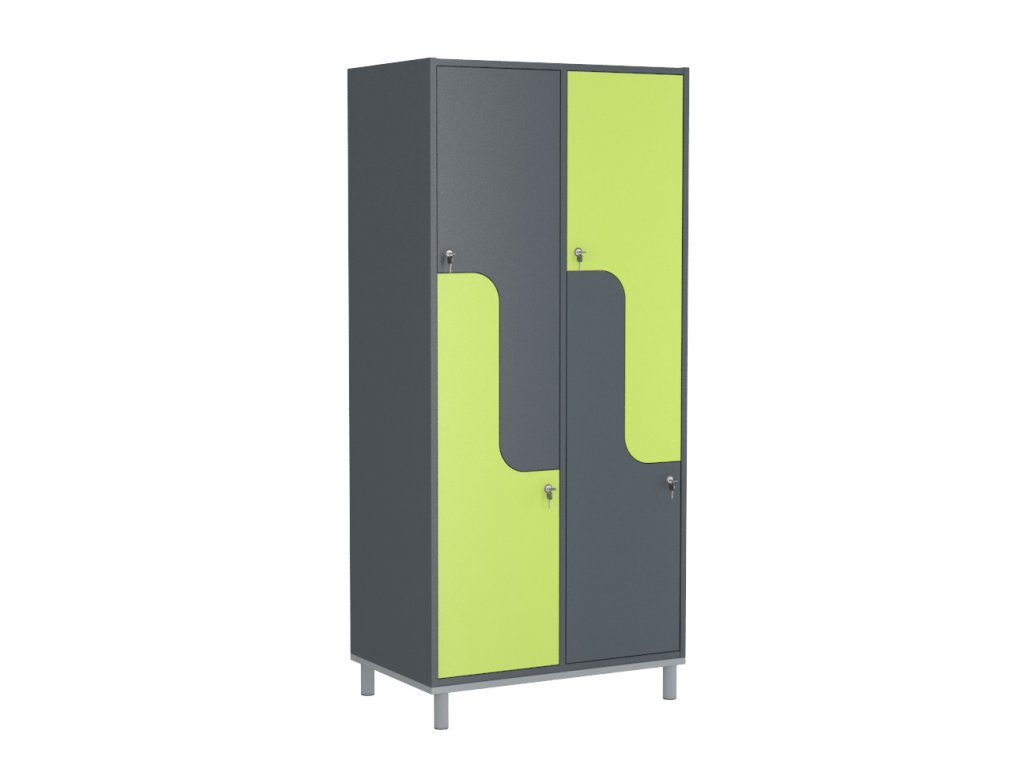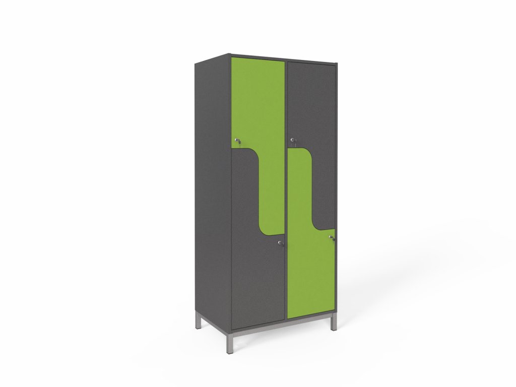Praktické a cenově dostupné šatní skříňky z laminované dřevotřísky se Z-dvířky v prostorově úsporné verzi, velice vhodné pro velký počet střídajících se uživatelů.