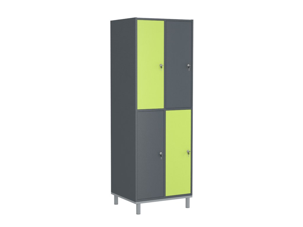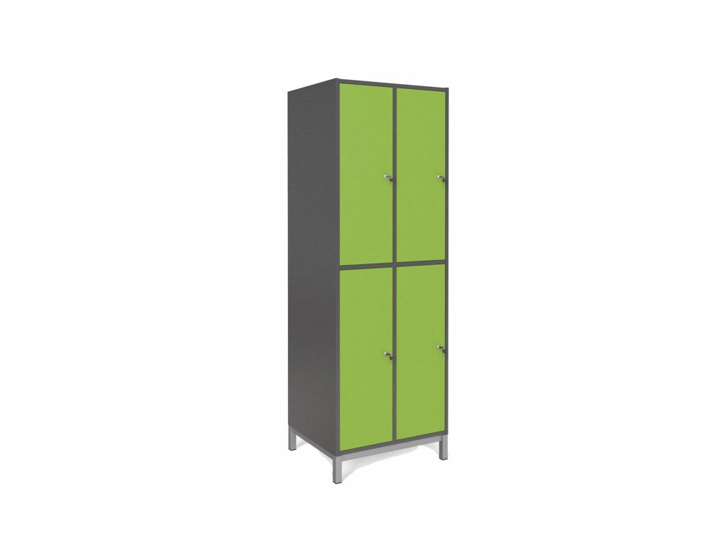 Praktické a cenově dostupné šatní skříňky z laminované dřevotřísky s dělenými dvířky, ideální, pokud máte v šatně (tělocvičny, bazénu nebo šatně pro zaměstnance) málo místa.