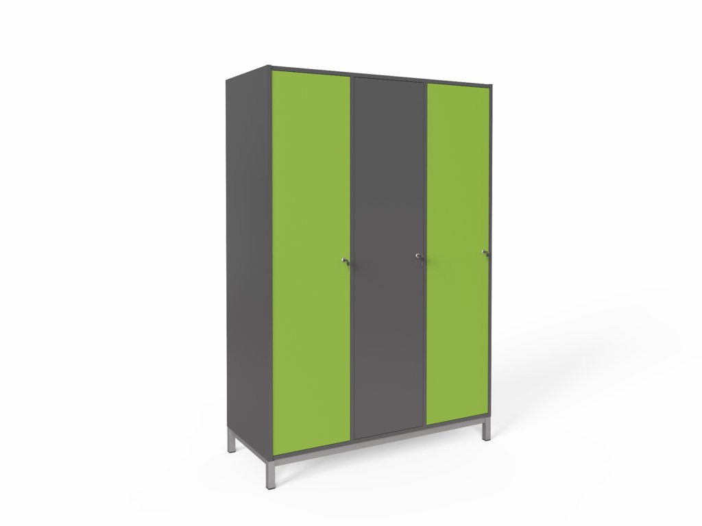 Šatní skříňky Fitt mají dvířka, oddělovací přepážky, stěny a korpus skříně vyrobeny z 18 mm laminované dřevotřísky s ABS hranou.