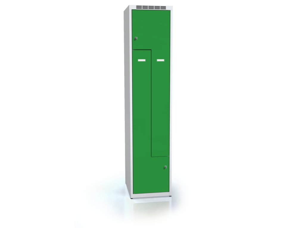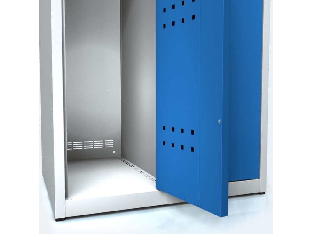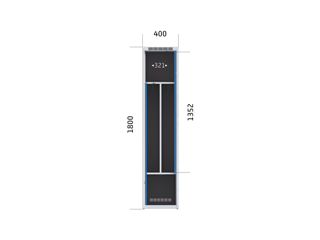 Skříň šatní s dvouplášťovými dveřmi provedení Z, sokl v = 40 mm, šíře oddělení 400 mm, počet oddělení - 1, počet dveří v oddělení - 2, v odd. 270 mm od víka police, na spodní straně police tyč s plast. háčky.