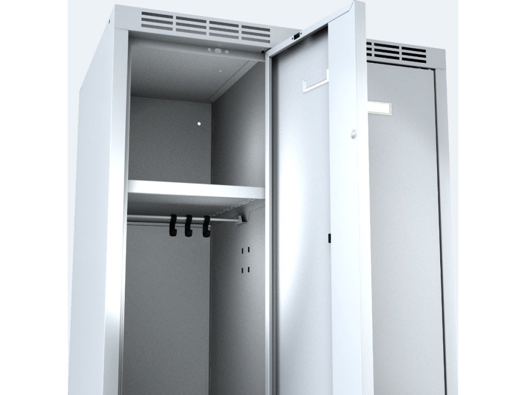 kovová šatní skříňka, detail větracích otvorů v horní části korpusu