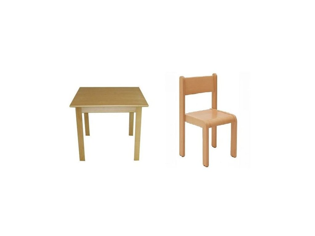 Sestava MAJA - přírodní = 1 stůl čtverec 80 x 80 cm + 4 židle s kluzáky