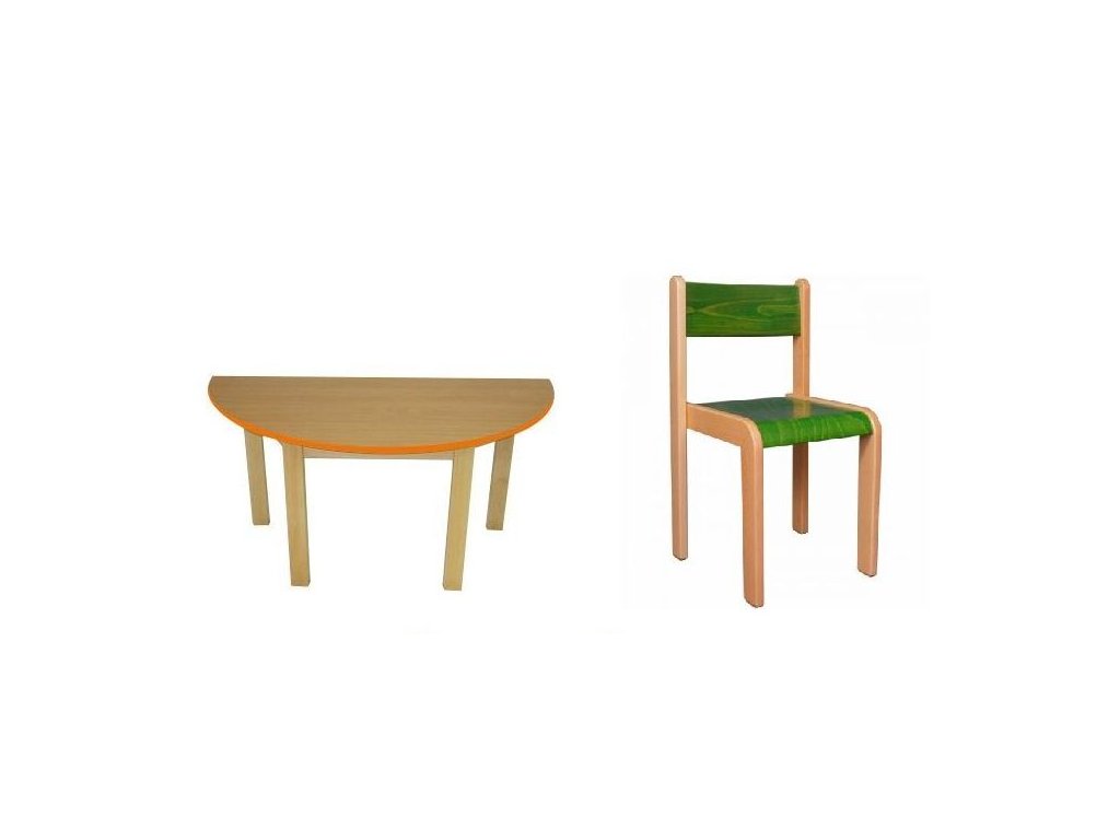 Sestava MAJA - barevná hrana = 1 stůl půlkruh 120 x 60 cm + 4 židle s kluzáky