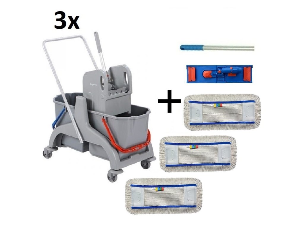 VÝHODNÉ BALENÍ - Set 3ks Úklidový vozík DOUBLE PL 2x25l + FLIPPER Mop sestava s devíti návleky 40cm