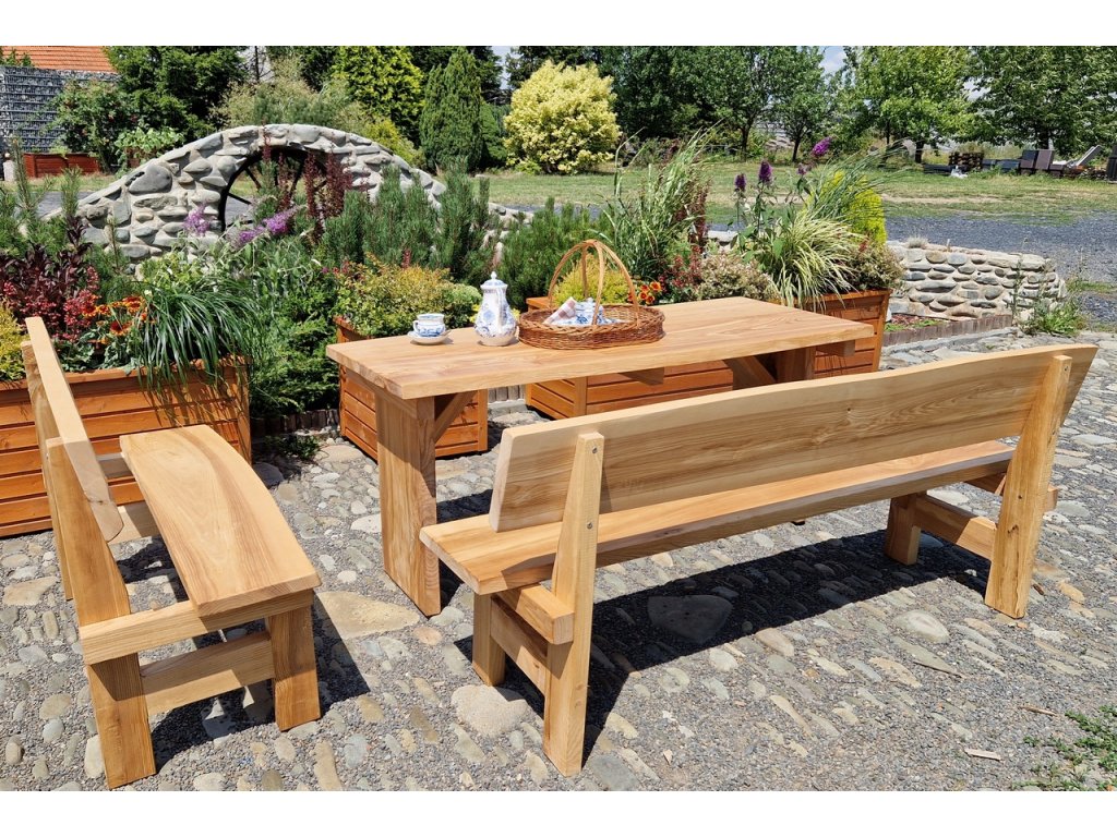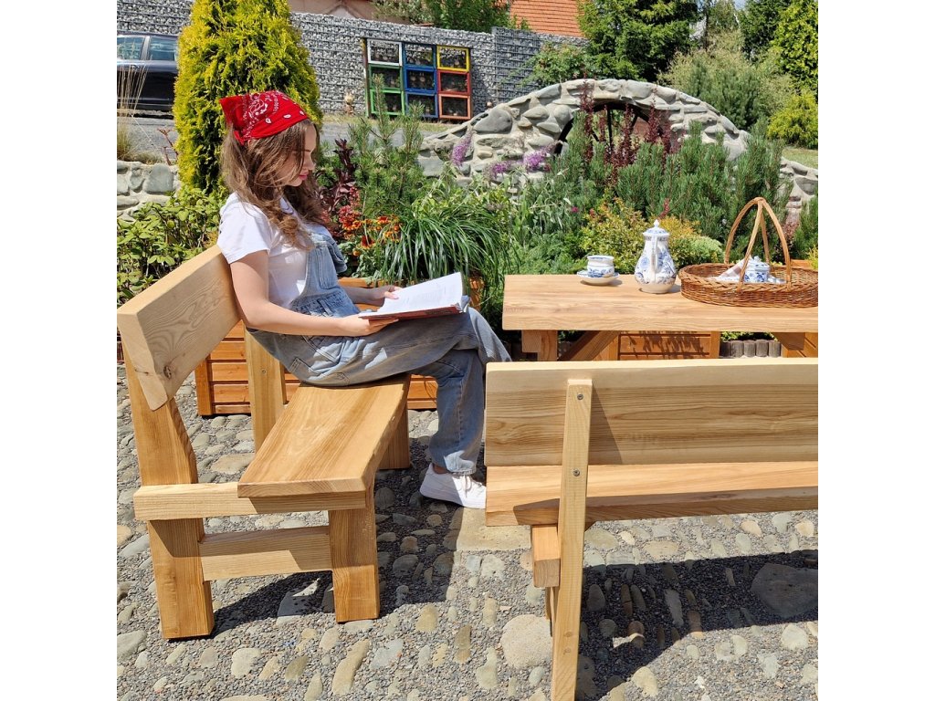 Ručně vyrobený zahradní nábytek z tvrdého jasanového dřeva o tloušťce 35 mm. Výhodou našich laviček je pevná konstrukce založená na spojení dřeva do dřeva. Konstrukce lavice je pro ještě větší pevnost spojena také nerezovými vruty. Díky použité technologii má náš zahradní nábytek opravdu dlouhodobou životnost a výjimečnou pevnost. Produkty lze zakoupit také jednotlivě.
