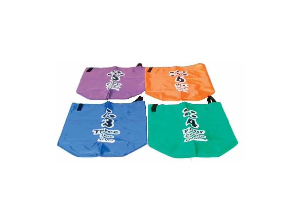 6 barevných pytlů na skákání s označením 1-6.