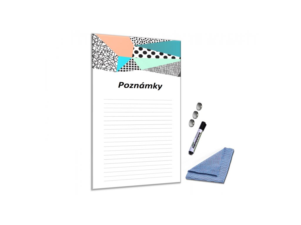 Skleněná magnetická tabule - dekorační poznámky svislé