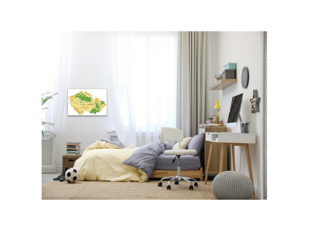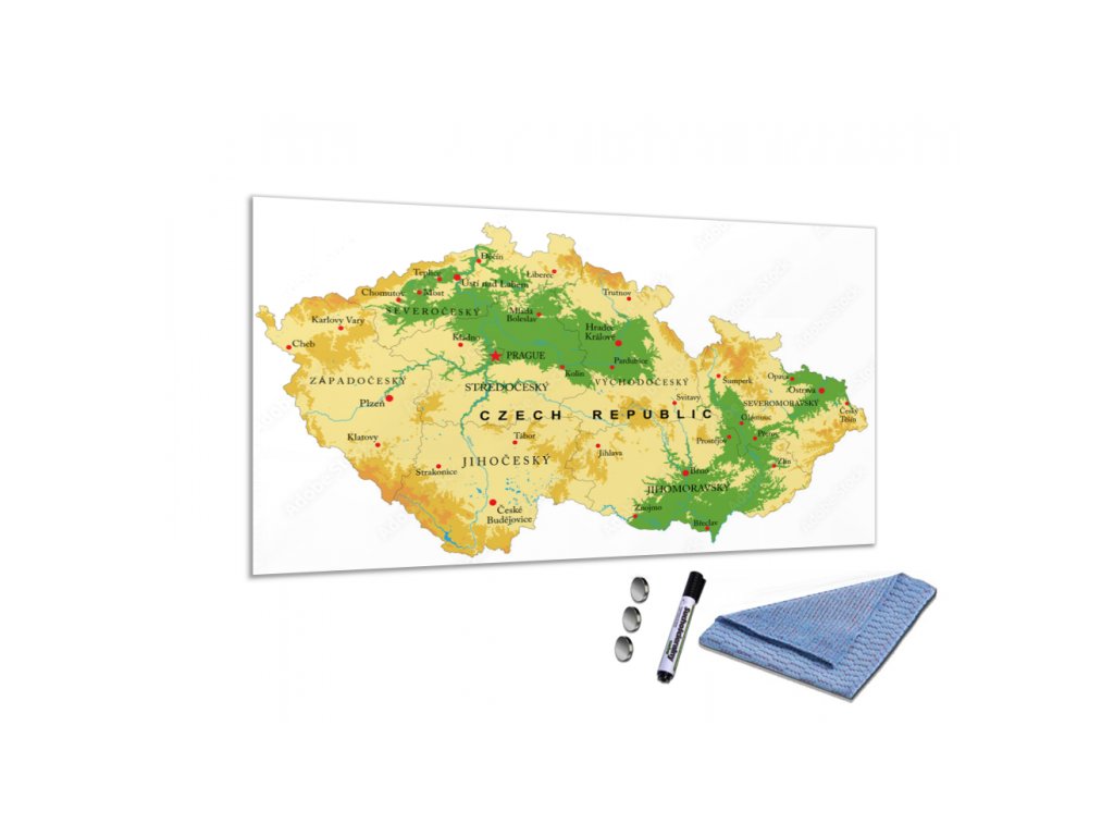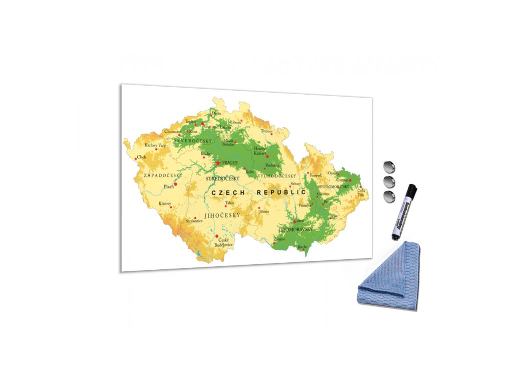 Skleněná magnetická tabule mapa - reliéf České republiky