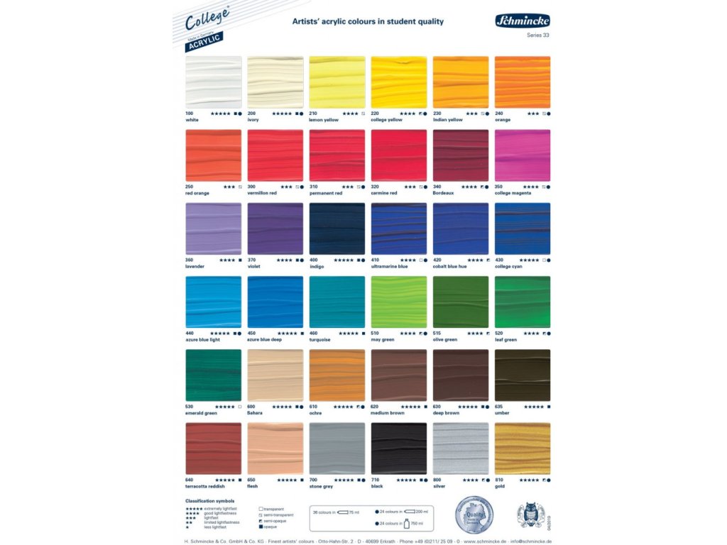Akrylové barvy College základní kvality od německého výrobce Schmincke.