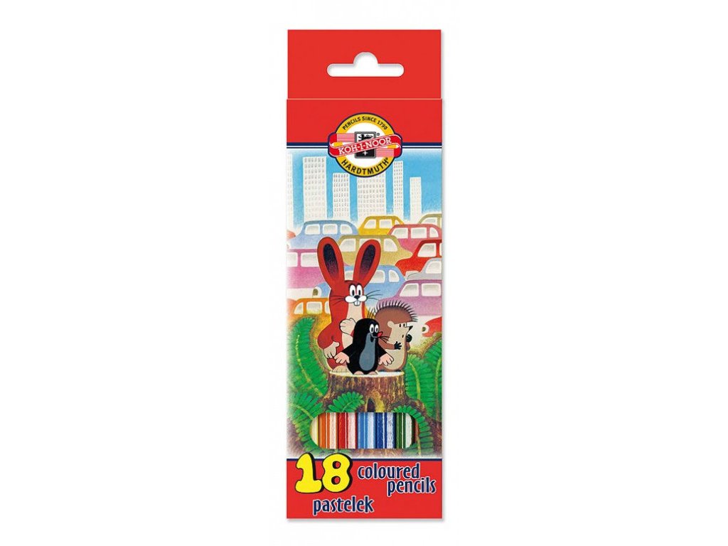 Sada obsahuje 18 barevných pastelek, vhodných spíše pro děti a amatéry.