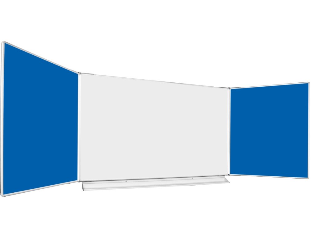 - Třídílná magnetická tabule na fixy a křídy s vysoce odolným keramickým povrchem nejvyšší kvality vhodným pro intenzivní popis.