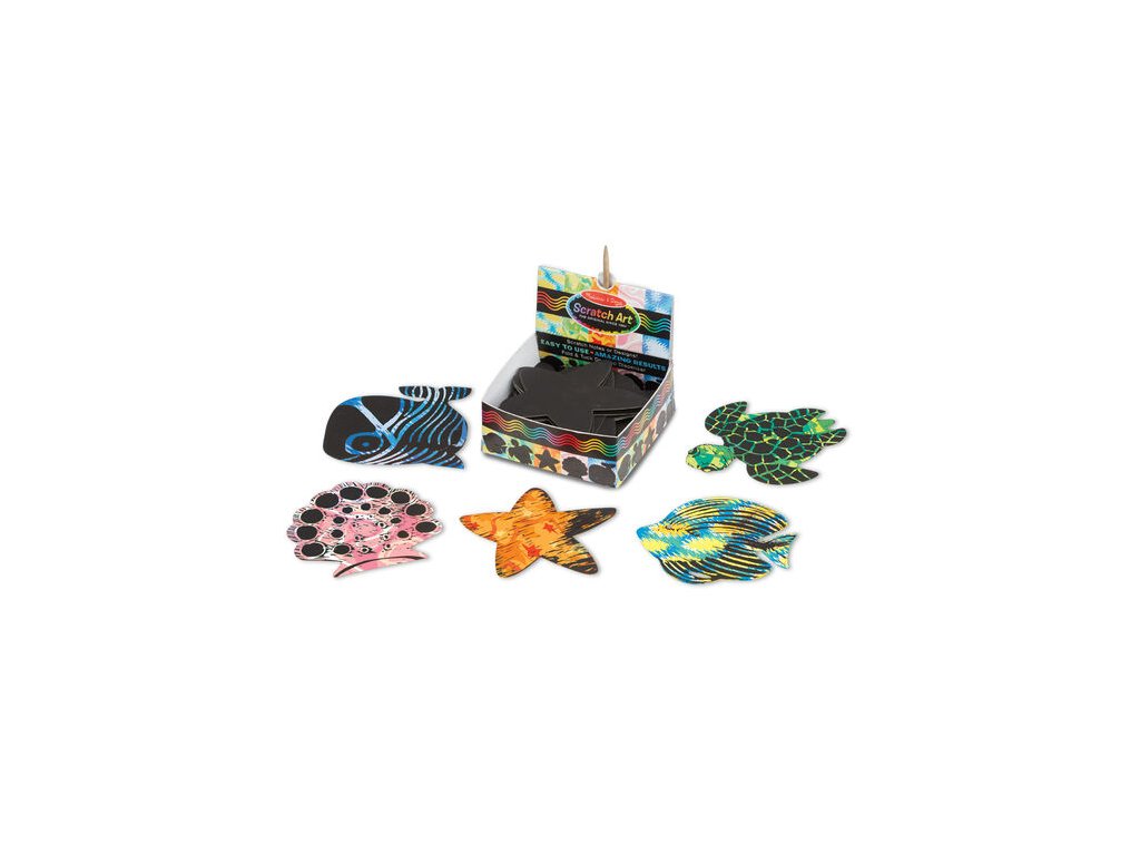 Balení obsahuje: 125 mini bločků s pěti motivy oceánu (ryby, želva, mořská hvězda, mušle a velryba), /rozměr 9,5 x 9,5 cm/ dřevěné vyškrabovací pero a stojánek.