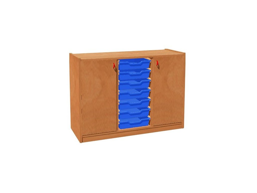 Skříňka se 2 dvířky a 7 plastovými zásuvkami uprostřed